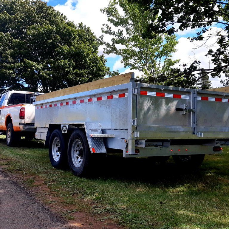 This dump is a bigger, heavier version of the Contractor Dump. t offers the same width box and stabilizer legs but is capable of carrying 10,000 lbs of equipment which is a pretty handsome sized mini excavator.